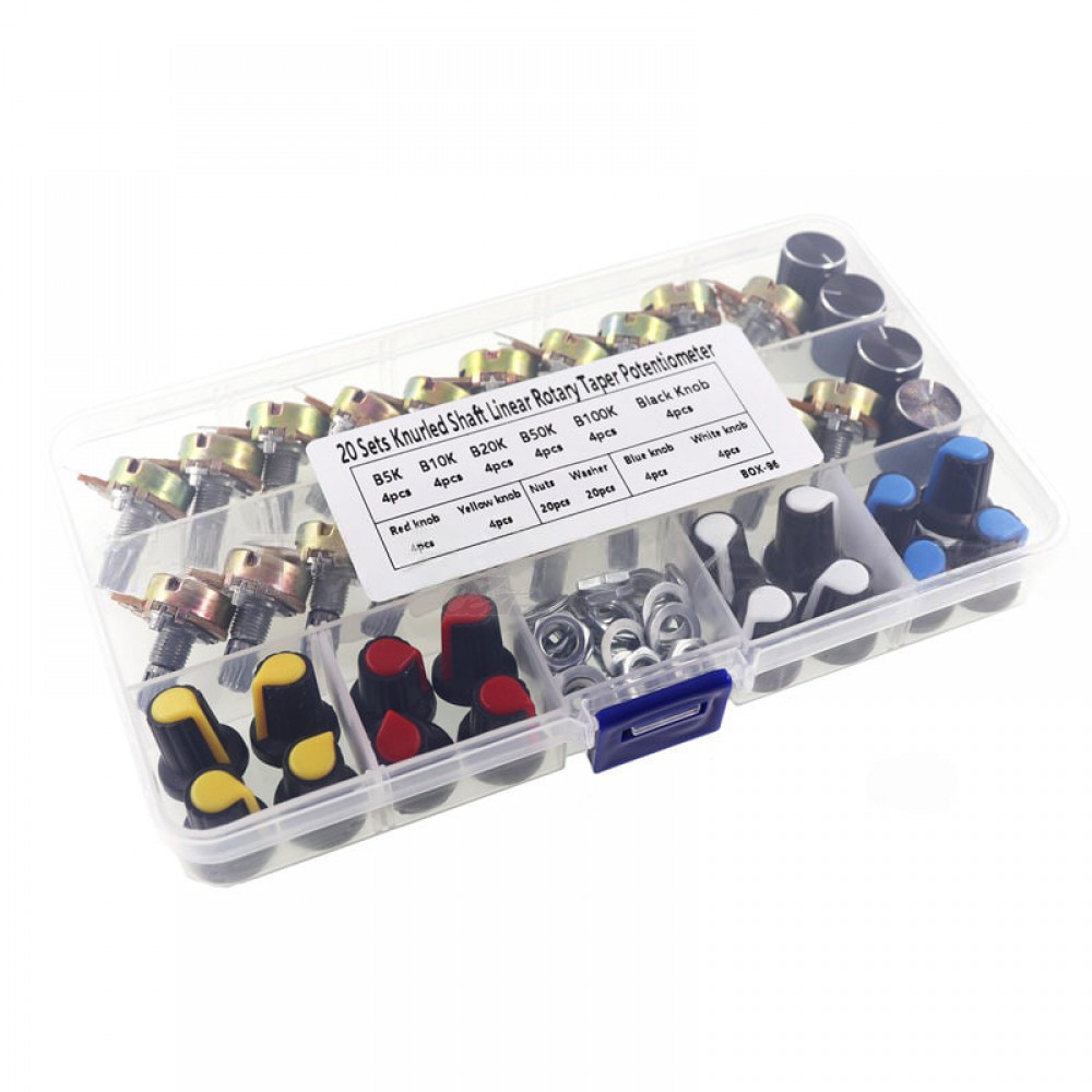 Набор потенциометров WH148 5 номиналов по 4шт (5 кОм - 100 кОм) кейс