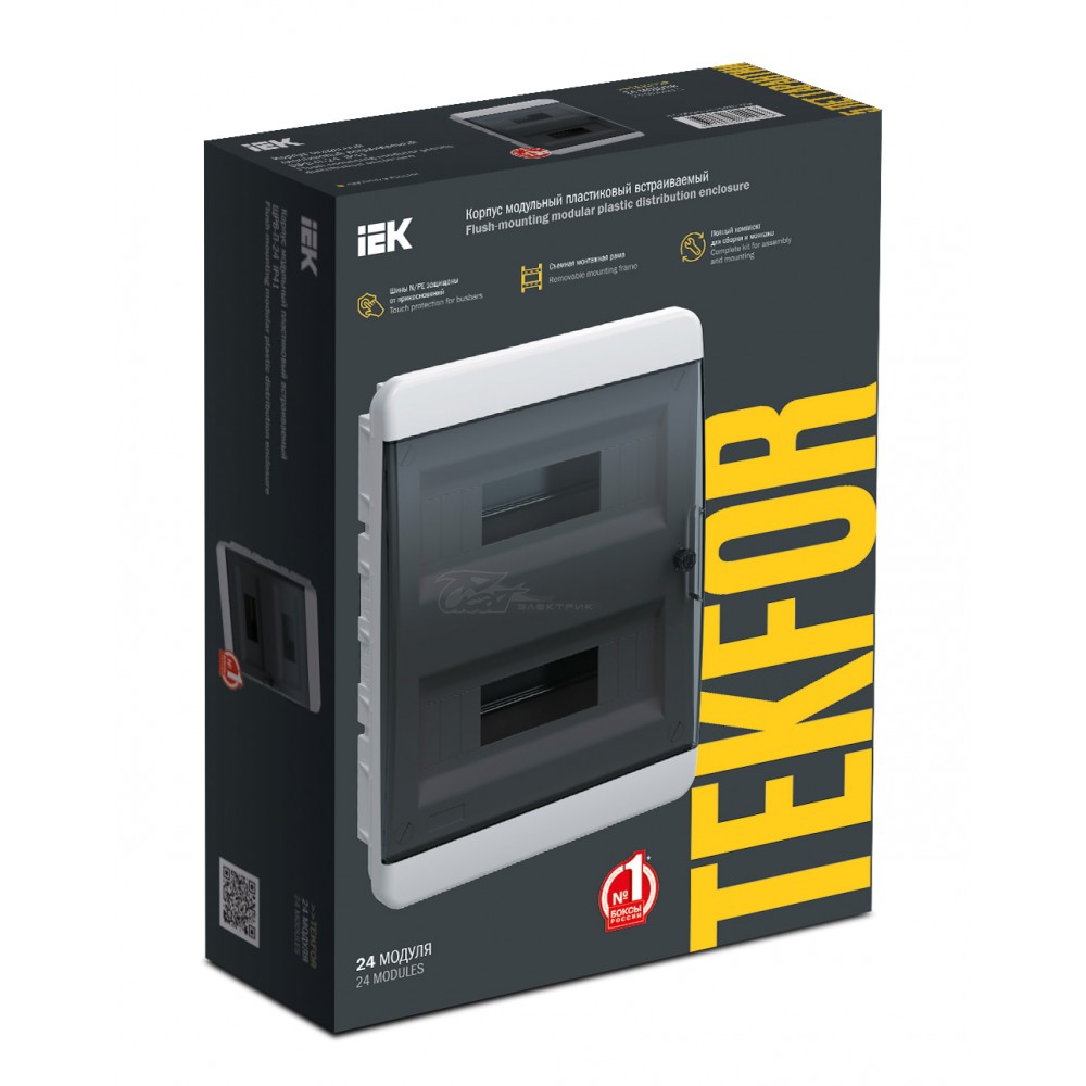 Корпус пластиковый ЩРВ-П,24 модуля встраиваемый черная прозрачная дверь IP41 TEKFOR
