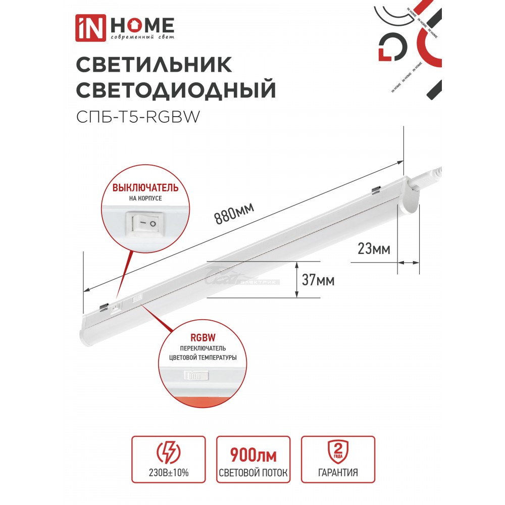 Свет-ик СПБ Т5 10Вт RGBW + 4000K 230В 900лм IP40 900мм IN HOME
