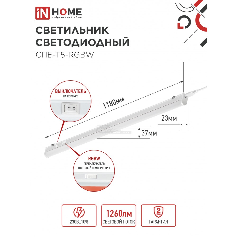 Свет-ик СПБ Т5 15Вт RGBW + 4000K 230В 1260лм IP40 1200мм IN HOME