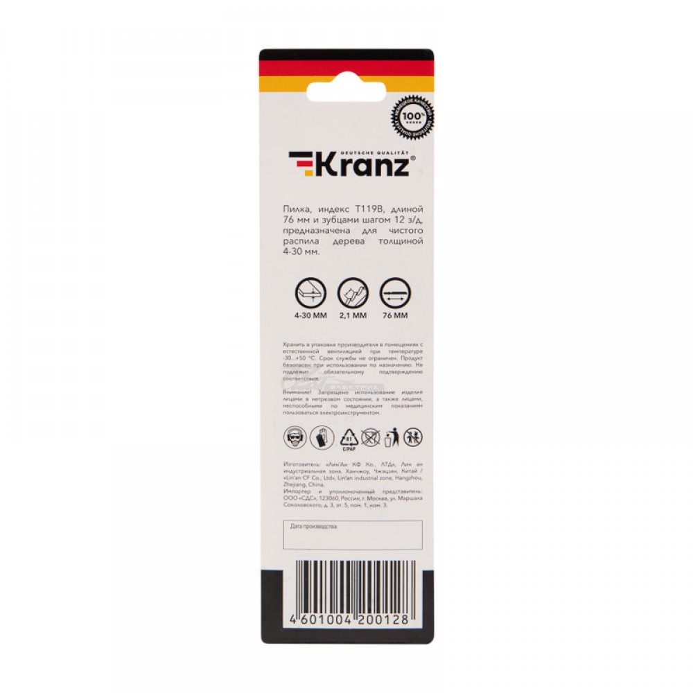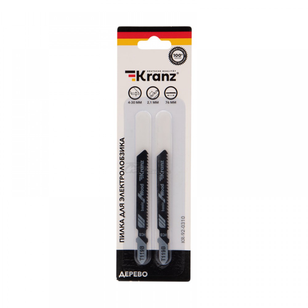 Пилка для электролобзика по дереву T119B 76мм 12 зубьев на дюйм 4-30мм (комплект 2шт) Kranz