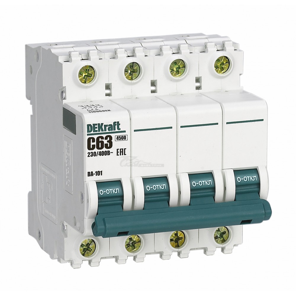 Выключатель автоматический 4Р 63А (C) DEKraft 4.5кА ВА-101