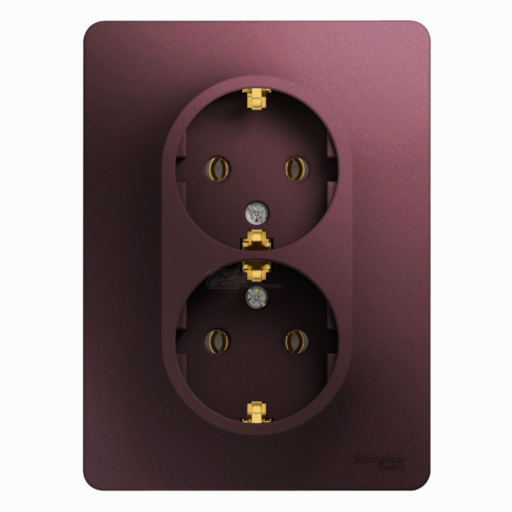 Розетка 2-местная с/з с/п баклажан в сборе с рамкой Glossa