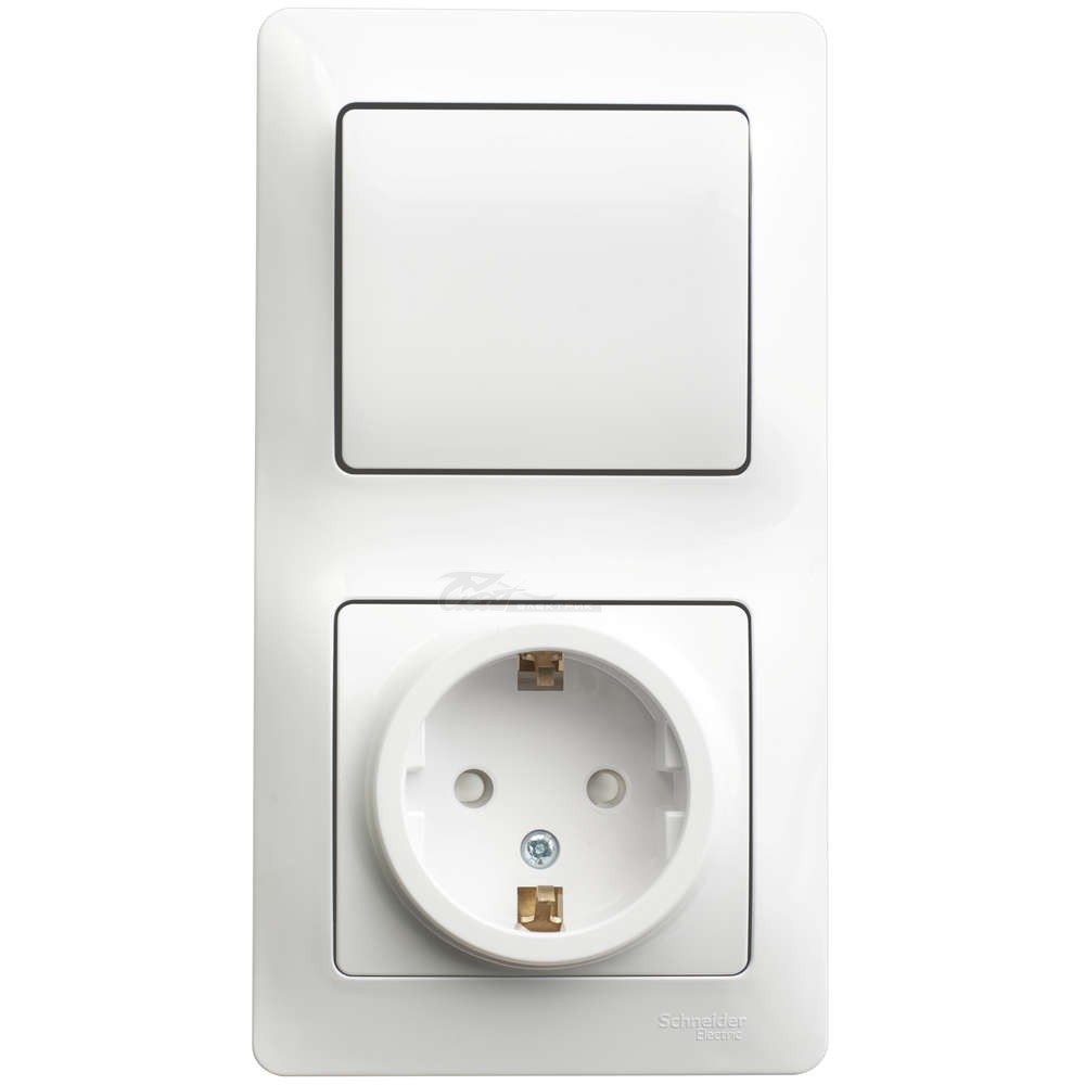 Блок комбинированный (выключатель+розетка с/з) белый Glossa