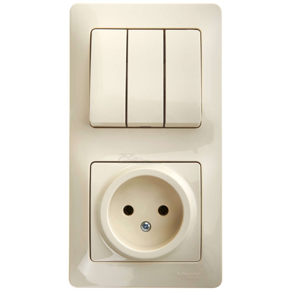 Блок комбинированный (выключатель 3-кл+розетка б/з) белый Glossa