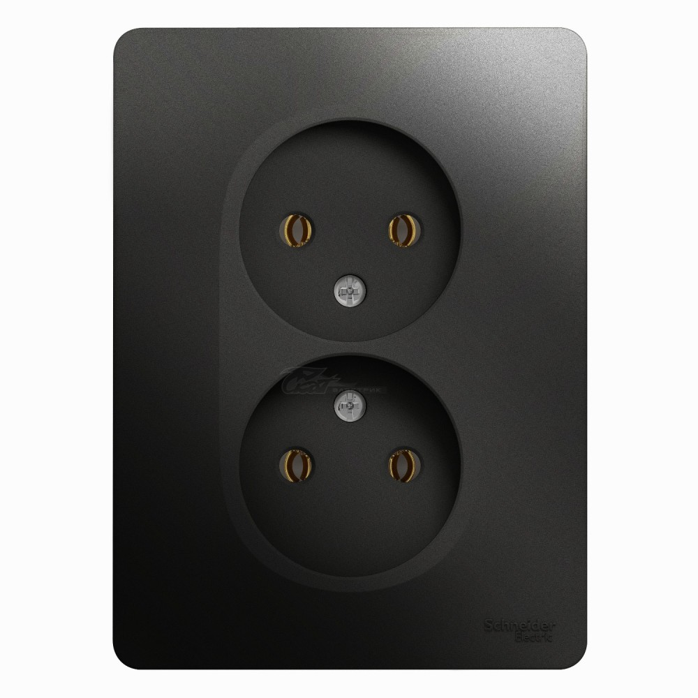 Розетка 2-местная б/з с/п антрацит в сборе Glossa