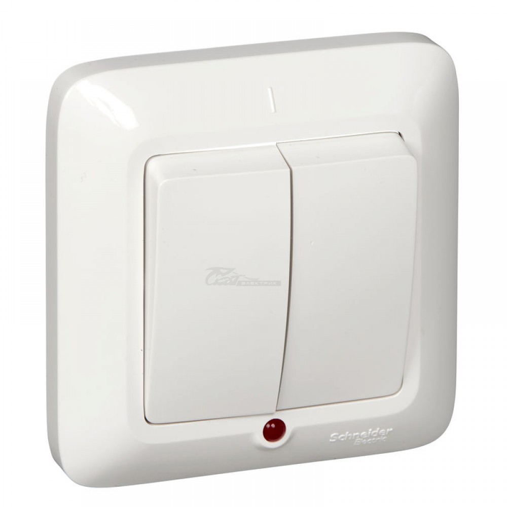 Выключатель 2-клавишный с/п с индикатором белый Прима