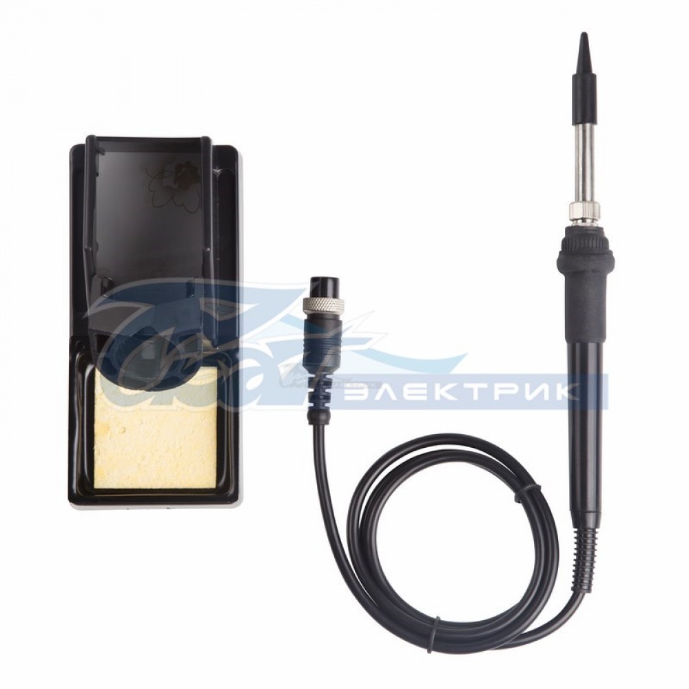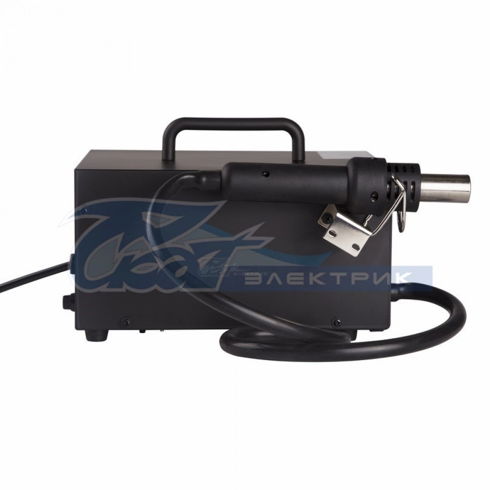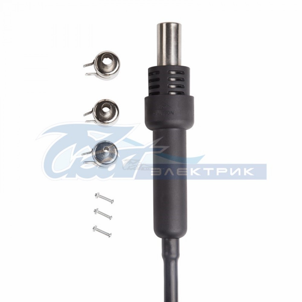 Комплектация станции: основной блок, термофен, паяльник, держатель паяльника, держатель термофена, губка для очистки жала паяльника (в ложементе), 3 насадки для термофена разного размера.